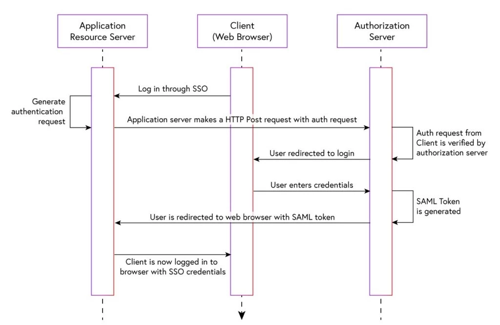 This sequence diagram shows an example of how SAML authentication can be utilized for web-based, cross-domain SSO.